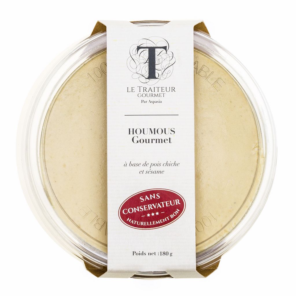 Ingrédients : Pois chiche 46% , purée de graines de sésame 20,6%, fromage blanc 0% de MG (lait écrémé, ferment lactiques), huile de colza, eau, huile d'olive vierge extra, jus de citron concentré, ail, sel, acidifiant : acide citrique.