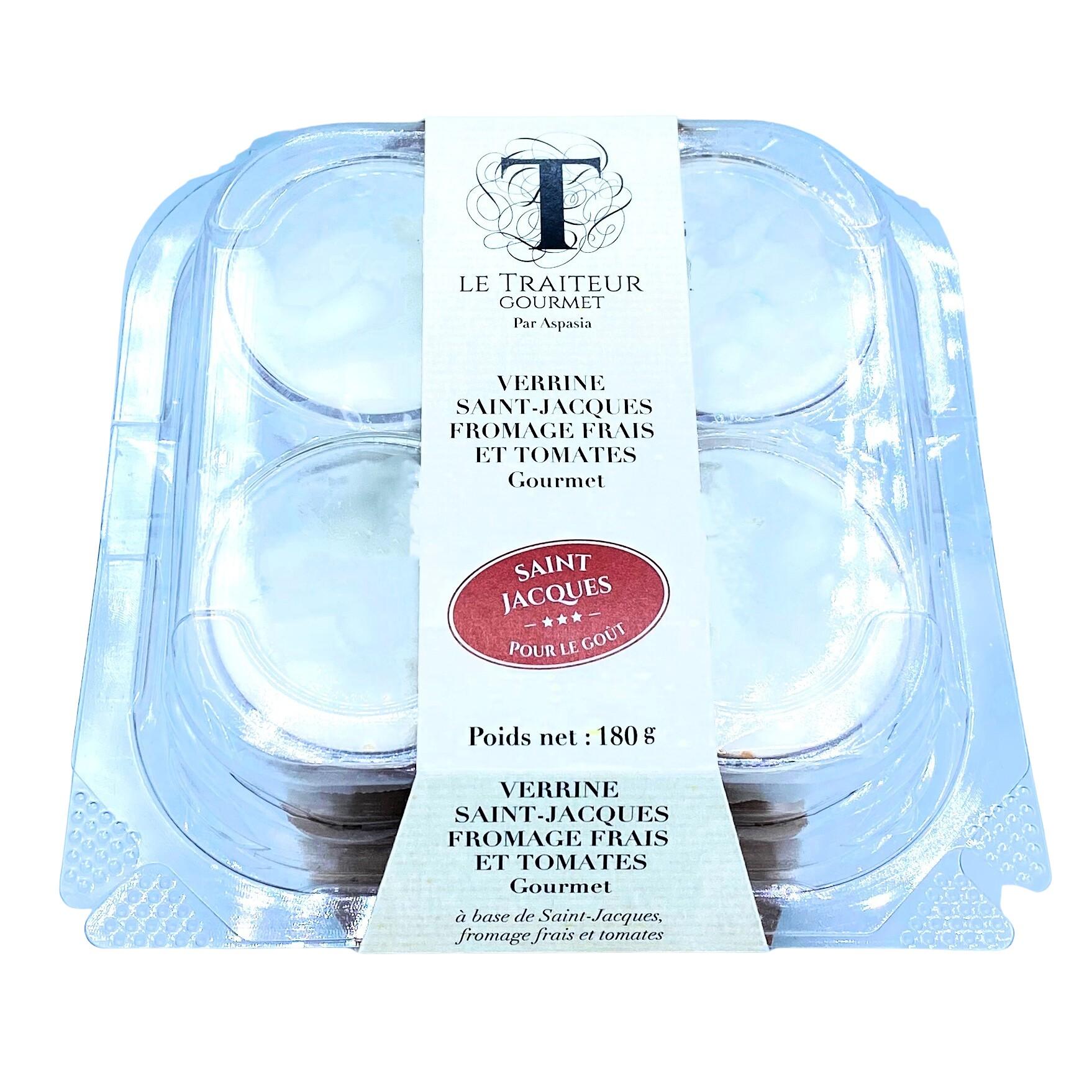 4 verrines Saint-Jacques, fromage blanc et concassé de tomates (préparation à base de fromage blanc, Saint-Jacques et tomate)
