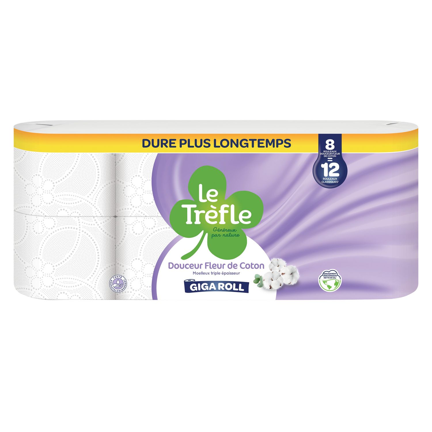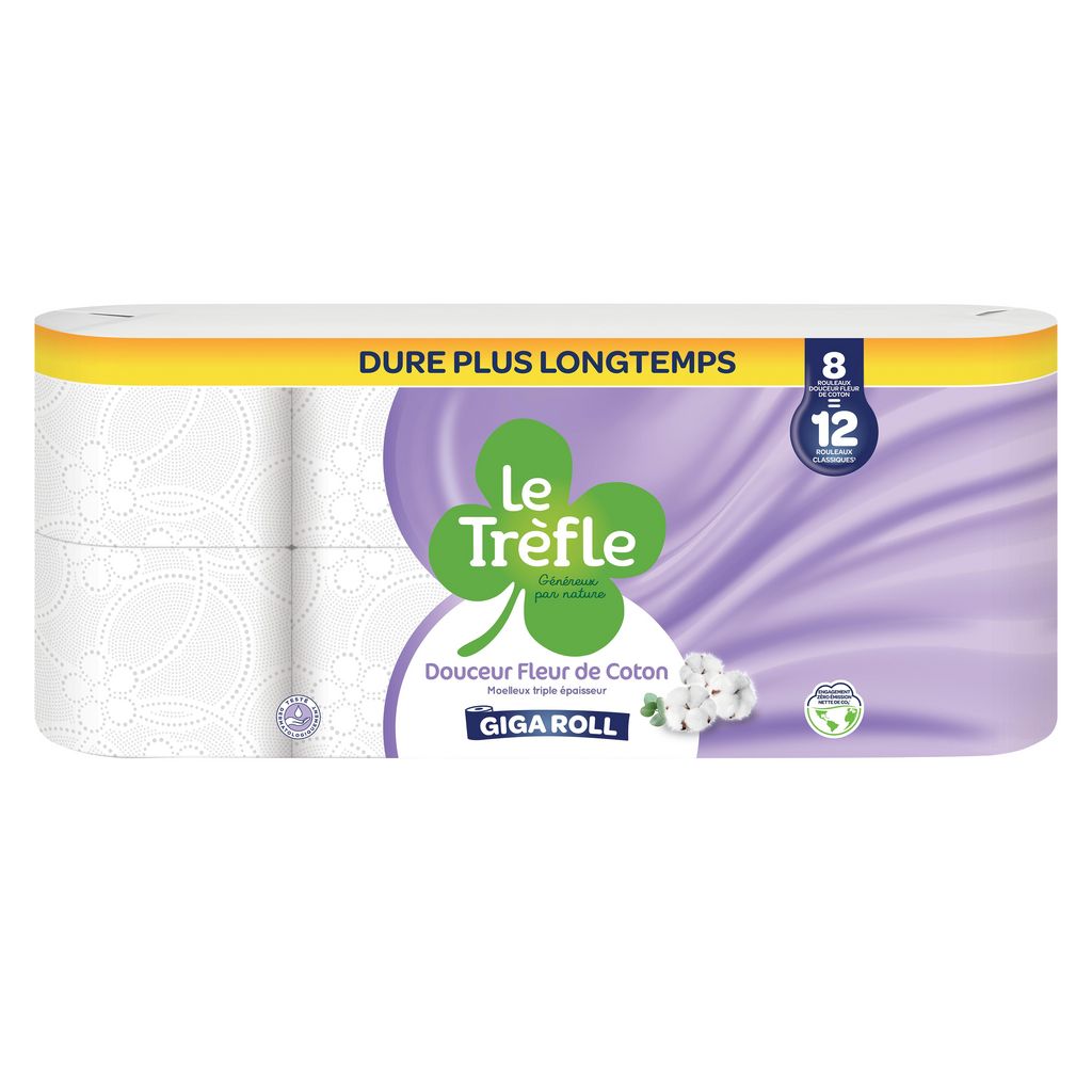 PAPIER TOILETTE LE TREFLE MAXI FEUILLE DOUCEUR DE COTON FSC X8=12 RLX CLASSIQUES