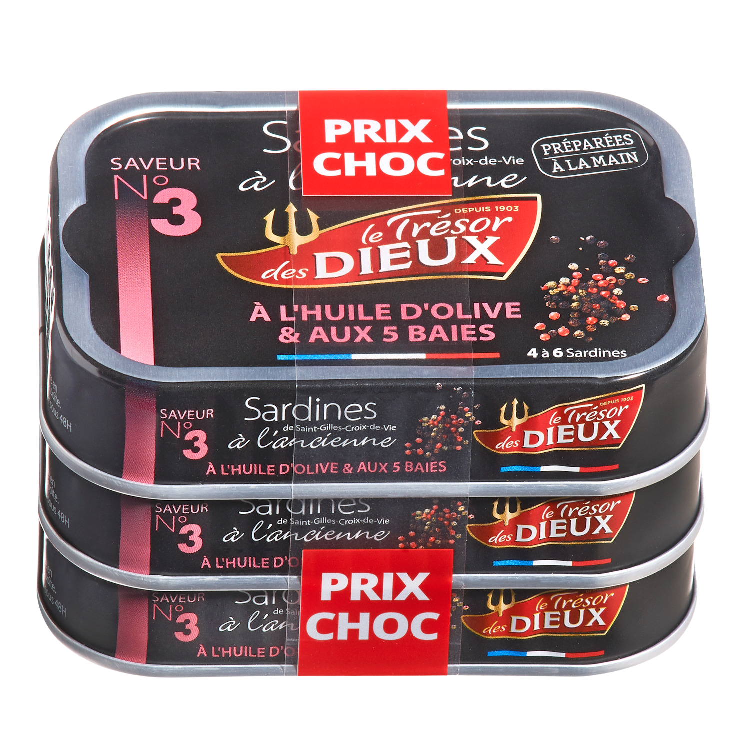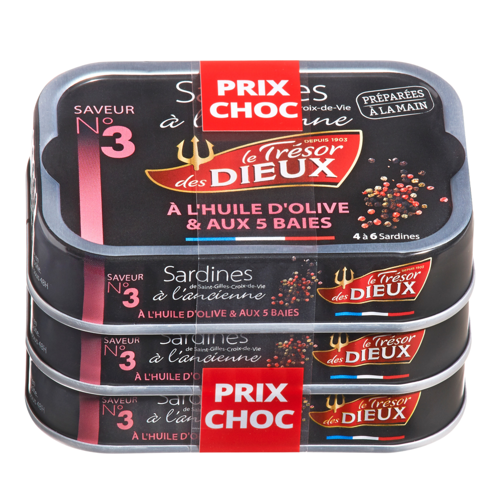 Lot 3*1/6 Sardines à l'Ancienne huile d'Olive et aux 5 Baies PRIX CHOC