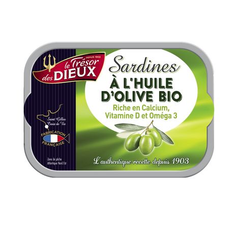 1/6 Sardines à l'Huile d'Olive Vierge Bio115grs Le Trésor des Dieux