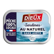 Le Trésor des Dieux vous propose de découvrir ses sardines sans arête au naturel. Pêchées au large de Saint-Gilles-Croix-de-Vie, leur fraîcheur est l'expression même de la force de l'océan. Après une cuisson traditionnelle, elles sont emboîtées manuellement et tout simplement agrémentées d'un filet de citron. Retrouvez ainsi toutes les saveurs originelles et naturelles des sardines.