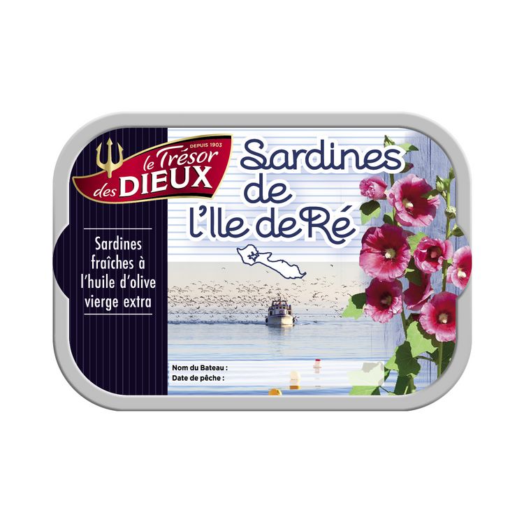 Le Trésor des Dieux vous propose des sardines pêchées au large des côtes de l'Ile de Ré, par les pêcheurs de Saint Gilles Croix de Vie. Fraîches, elles sont préparées comme autrefois, "parées", et cuites en bain de friture avant d'être égouttées et mises en boite manuellement. Préparées au sel de l'Ile de Ré et à l'huile d'olive vierge extra.