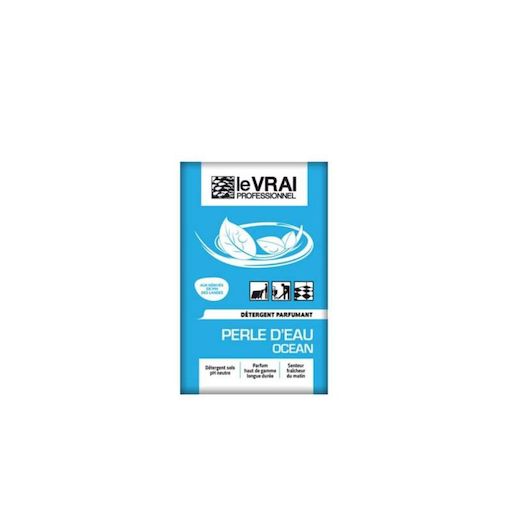 Détergent sols Le Vrai Professionnel Perle d'eau - 125 doses de 16 mL, détergent de longue durée pour tous les types de sols en milieux collectifs. Son parfum haut de gamme dure jusqu'a 8 heures.