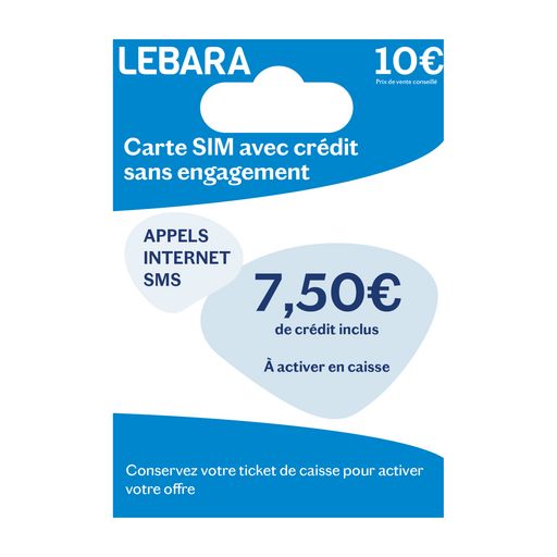 Carte SIM Prépayée Sans Abonnement 10€ crédit 7.50€