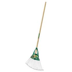 Ratissage des feuilles, des herbes et débris végétaux sur tout types de terrains. Pour scarifier les pelouses,affiner et niveler la terre avant semis. Dents puissantes en fil rond acier, empêchent les feuilles de remonter le long des dents. S'adapte à tous les terrains quel que soit le relief. Monture polymère à la fois légère, maniable et robuste. Poignée ergonomique. Largeur 52cm.20 dents, manche bois.
