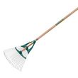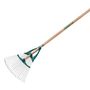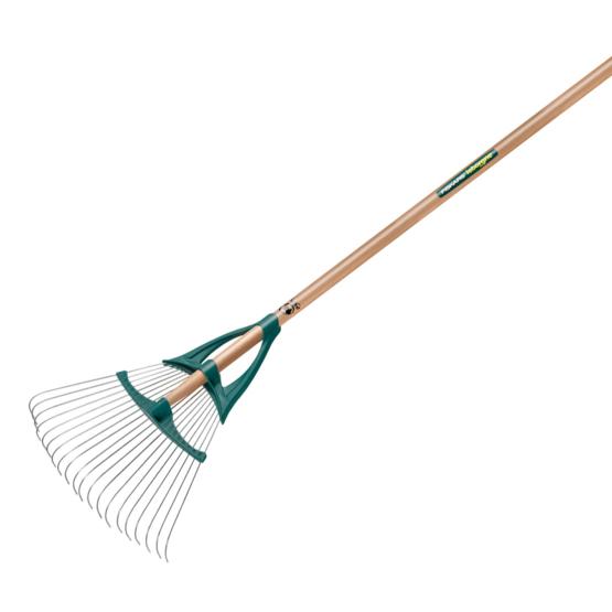 Forme des dents étudiée pour empêcher les feuilles de remonter le long des dents Fixation de la monture polymère en 3 points : outil renforcé (le manche participe à la résistance de la tête). Maniable : forme de la monture en V, ne se coince pas entre les troncs. Poignée facilitant le ramassage des tas, idéale pour suspendre l'outil. Manche extra-long de 150 cm pour un confort optimisé