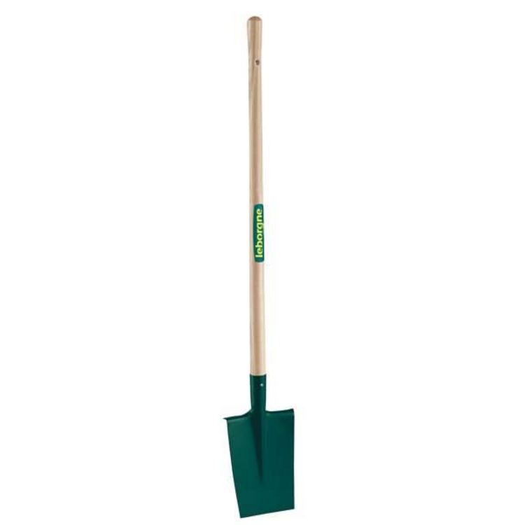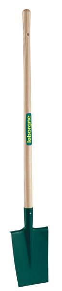 Outil plus léger, compact et maniable. Fer 1,7 mm d'épaisseur. Bord d'attaque arrondi: favorise la pénétration dans le sol. Repose-pieds: confort et sécurité, ne coupe pas les bottes. Equipé d'un manche en bois.