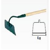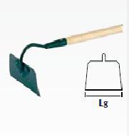 Lame en acier auto-affûtante. Equipé d'un manche en bois percé.
