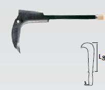1 taillant courbe pour débroussailler et 1 taillant droit pour défricher.