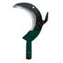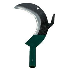 Outil sans manche. Pour ébrancher, débroussailler les talus, les accotements de routes... Le taillant en forme de croissant s'utilise en faisant glisser la lame le long du tronc pour cuper les branches de petite section et comme outil de frappe pour les branches de moyenne section. Equipé d'un croch