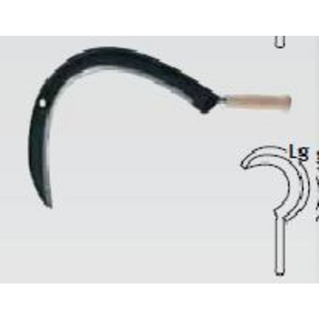Lame coudée pour faucher sans se blesser les mains, renforcée par cote extérieure.