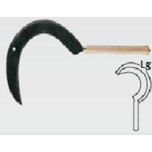 Lame coudée pour faucher sans se blesser les mains, renforcée par cote extérieure.