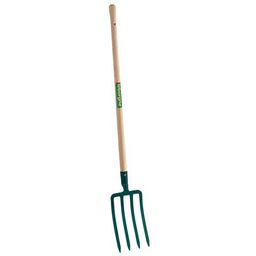Fourche à bêcher douille - 4 dents triangulaire 8 mm. Equipé d'un manche bois percé.