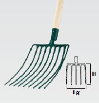 Idéal pour charrier les gros cailloux, les pierres, les galets. Les dents pénètrent facilement dans le tas de cailloux contrairement à une pelle. Outil forgé et trempé pour une meilleure résistance à l'usure. Equipé d'un manche en bois percé.
