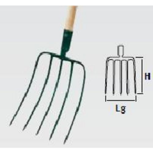 Pour charger et manutentionner du fumier, des branchages, des déchets végétaux...Outil forgé et trempé pour une meilleure résistance à l'usure. Protège pointe: rangement sécurisé. Tête LG22 x H30cm. Equipé d'un manche en bois percé.