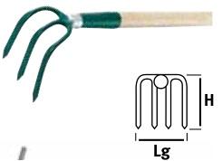 Griffe à rosier. Manche 90 cm, emmanchement à soie. Largeur 10cm. Equipé d'un manche en bois percé.