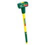 Angles arrondis: retarde le refoulement matière, diminue les risques d'éclats. Faces latérales plates: réduit les risques d'éclater les piquets en bois. Manche trimatière avec pare faux-coups: ultra robuste et confortable. Emmanchement douille rase: protège l'extrélité du manche.