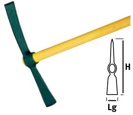 Outil sans manche. Idé,ales pour dé,planter un arbuste. Cô,té, panne pour creuser et racler, cô,té, hache pour couper les racines. Panne et hache affuté,es. Douille ovale 50 x 32mm. LG6 x H50cm.