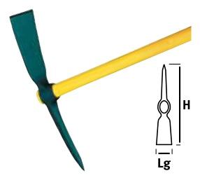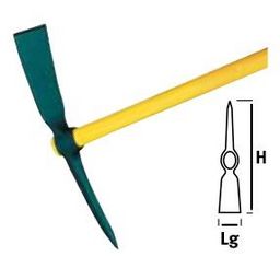 Outil sans manche. Pour le terrassement et les gros travaux du jardin. Douille Ovale 50x32mm. 1 panne é,troite pour dé,croû,ter, creuser, couper les racines.1 pic pour dé,pierrer, dessoucher. Trou de suspension pour faciliter le rangement. LG10xH56cm.