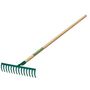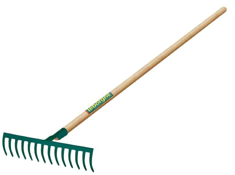 Pour ramasser les déchets, feuilles et cailloux... pour briser les mottes après le bêchage, affiner la terre et niveler les sols. Dents entièrement trempées pour une meilleure résistance dans les travaux durs. Largeur 35cm, 14 dents. Equipé d'un manche en bois percé.