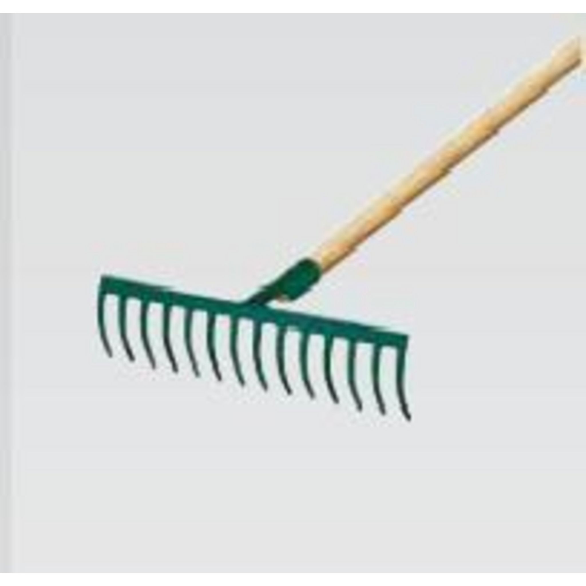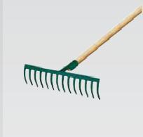 Pour ramasser les déchets, feuilles et cailloux... pour briser les mottes après le bêchage, affiner la terre et niveler les sols. Dents entièrement trempées pour une meilleure résistance dans les travaux durs. Largeur 40cm, 16 dents. Outil sans manche.
