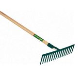 Pour ratisser, niveler, épandre la terre, le sable, les graviers... Dents droites permettant un travail en tirant et en poussant. Douille forgée plus robuste. Dents entièrement trempées pour une meilleure résistance lors des travaux durs. Equipé d'un manche en bois percé.