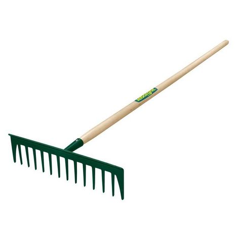Dents latérales renforcées et peigne entièrement trempé: meilleure résistance. Douille tubulaire: emmanchage renforcé. Réglette en acier: facilite le nivelage et consolide le peigne. Equipé d'un manche en bois percé.