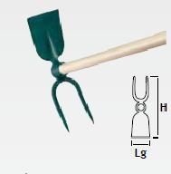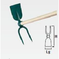 Serfouette à vigne - panne et fourche 38 cm Leborgne. Outil forgé et trempé pour une meilleure résistance à l',usure. Equipé d',un manche en bois percé.