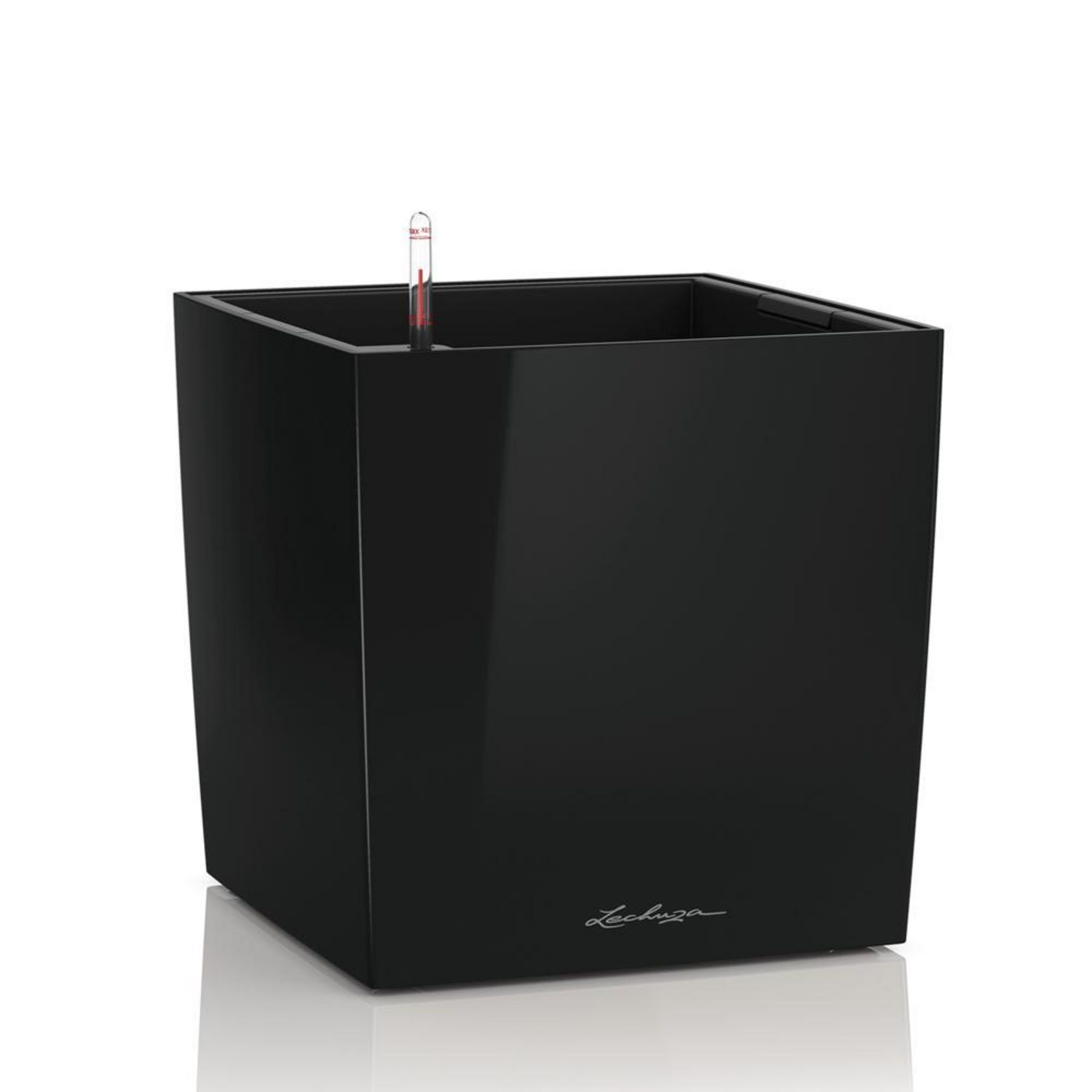 Pot + bac d&rsquo,arrosage avec poignées abaissables (breveté) + set d&rsquo,hydratation. Couleur noir brillant. Dimensions produit 50 x 50 x 50 (LxPxH) cm. Réservoir d'eau 14 L. Volume de plantation 61 L.