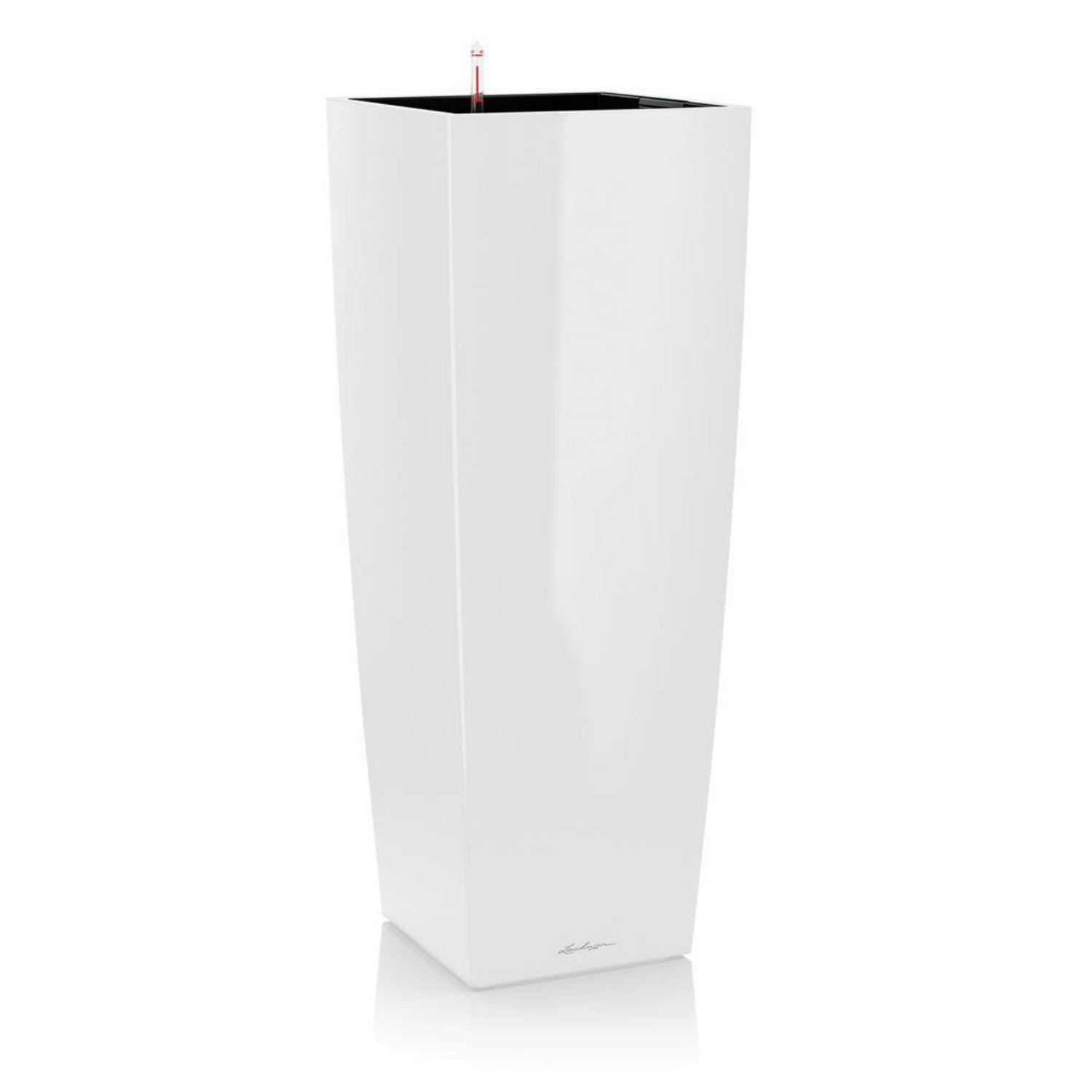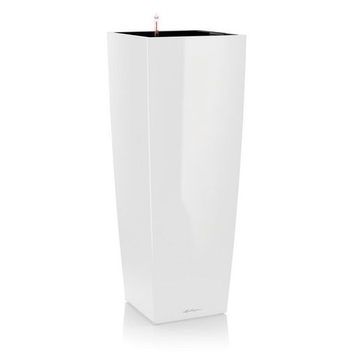 Pot + bac d&rsquo,arrosage avec poignées abaissables (breveté) + set d&rsquo,hydratation. Couleur blanc brillant. Dimensions produit 40 x 40 x 105 (LxPxH) cm. Réservoir d'eau 8 L. Volume de plantation 31 L.L&rsquo,élégance prend de la hauteur. CUBICO Alto maÎtrise à merveille l&rsquo,association des