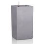 Pot + bac d'arrosage avec cadre de la couleur du Pot et encoches pour une meilleure prise en main + set d'hydratation Couleur gris pierre. Dimensions produit 40 X 40 X 76 (LxPxH) cm. Reservoir d'eau 7 L. Volume de plantation 29 L.