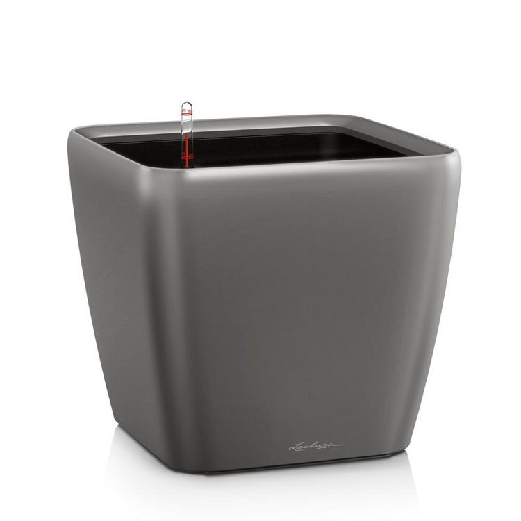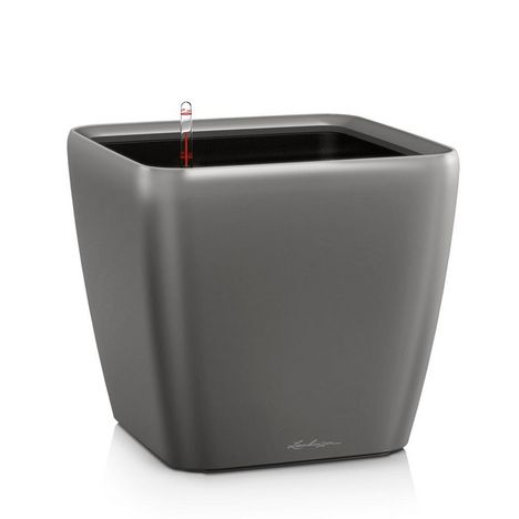 Pot + bac d&rsquo,arrosage avec cadre-anse abaissable (breveté) + set d&rsquo,hydratation. Couleur anthracite métallisé. Dimensions produit 50 x 50 x 47 (LxPxH) cm. Réservoir d'eau 15 L. Volume de plantation 53 L.Le pot quadro LS: Un grand altique LECHUZA aux accents modernes. Elégant à l&rsquo,exté