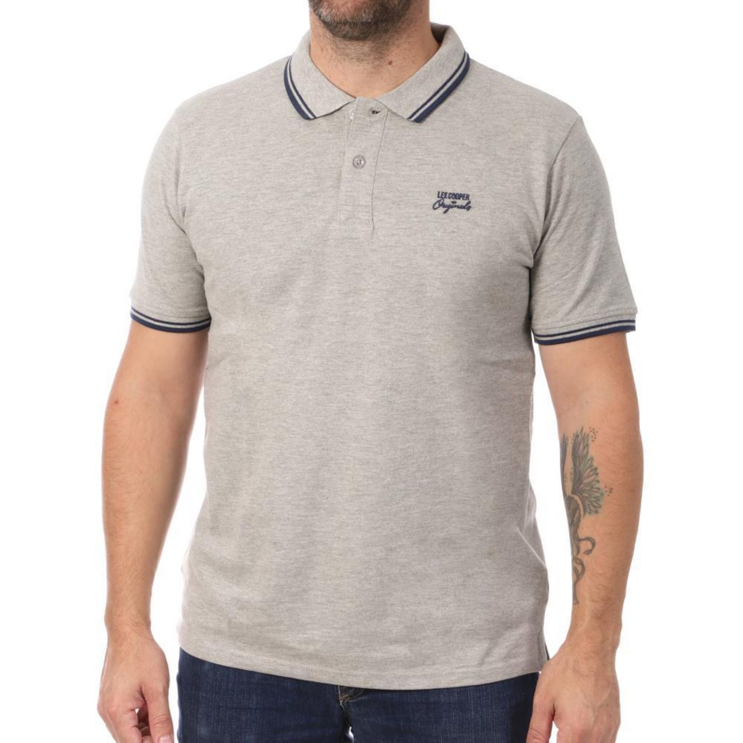 En savoir +N'attendez plus pour commander ce polo homme de la marque Lee Cooper ! Couleur : gris Coupe altique Col à deux boutons Manches courtes Broderie Lee Cooper sur la poitrine Composition : 100% coton