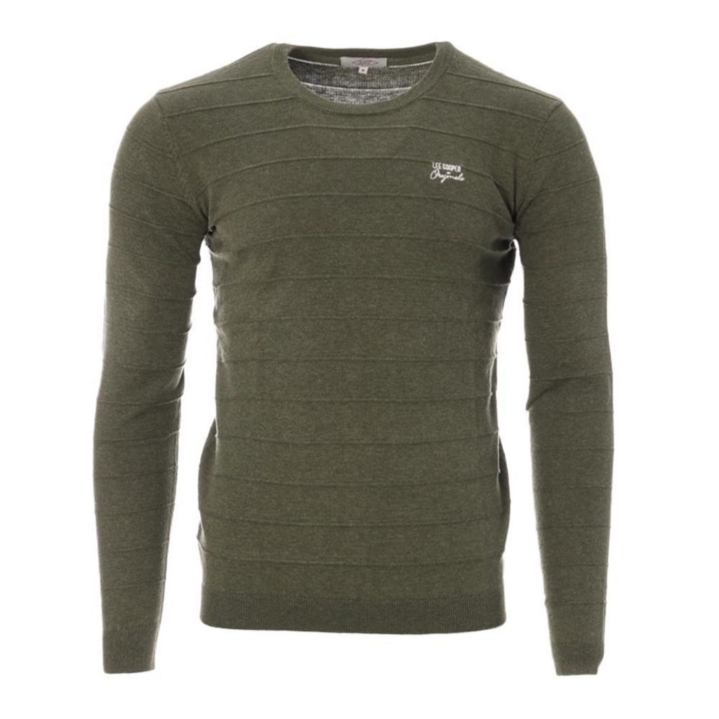 N'attendez plus pour commander ce pull homme de la marque Lee Cooper ! Couleur : Kaki Coupe altique Col rond Manches longues Rayures horizontales en relief Lee Cooper brodé sur la poitrine Composition : 100% coton