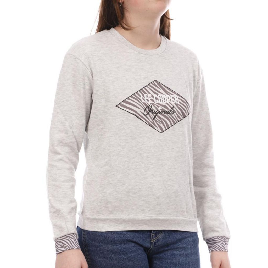 Craquez pour le sweat femme de la marque Lee Cooper Manches longues Col rond Coloris : Gris Composition : 98% coton , 2% viscose Imprimé Lee Cooper zèbre