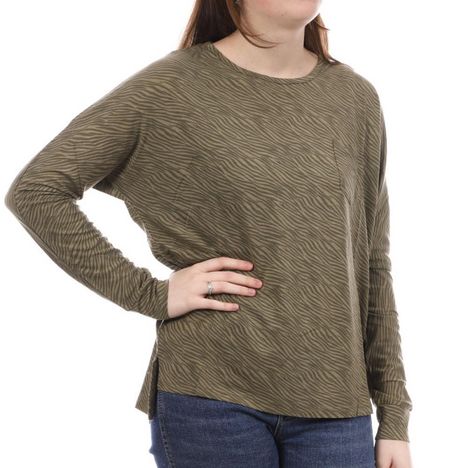 Craquez pour le t-shirt femme de la marque Lee Cooper Manches longues Col rond 1 poche Coloris : Kaki Imprimé zèbre Composition : 100% viscose