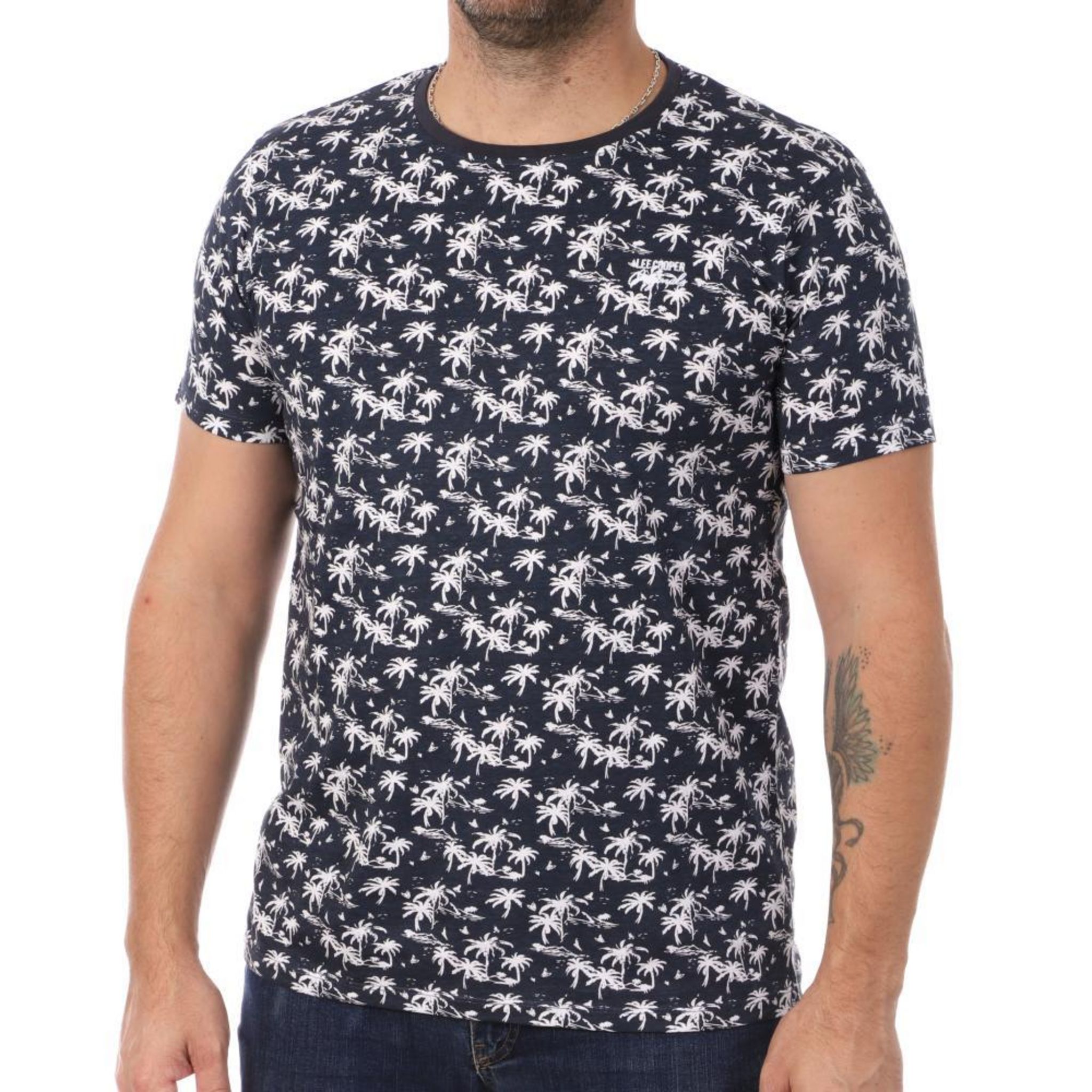 Optez pour ce t-shirt de la marque Lee Cooper ! Composition : 100% coton Col rond Manches courtes Motifs palmiers