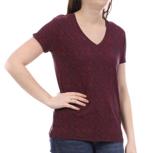 Optez pour le t-shirt femme de la marque Lee Cooper Manches courtes Col V Imprimé zèbre Coloris : Marine/Rouge Boutons pression sur les côtés Composition : 100% viscose