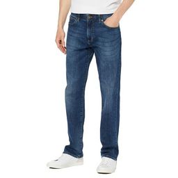 Découvrez ce jean homme de la marque Lee ! Couleur : Bleu foncé Coupe droite Braguette zippée Passants pour ceinture 5 poches Composition : 98% coton, 2% élasthanne Attention, les tailles indiquées correspondent aux tailles US !