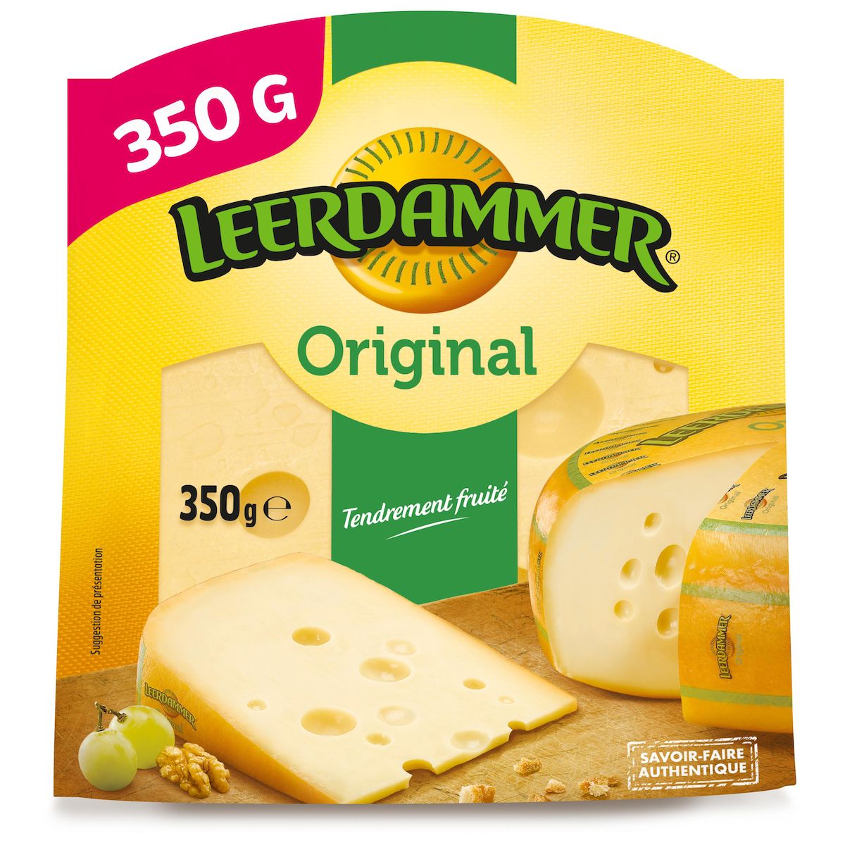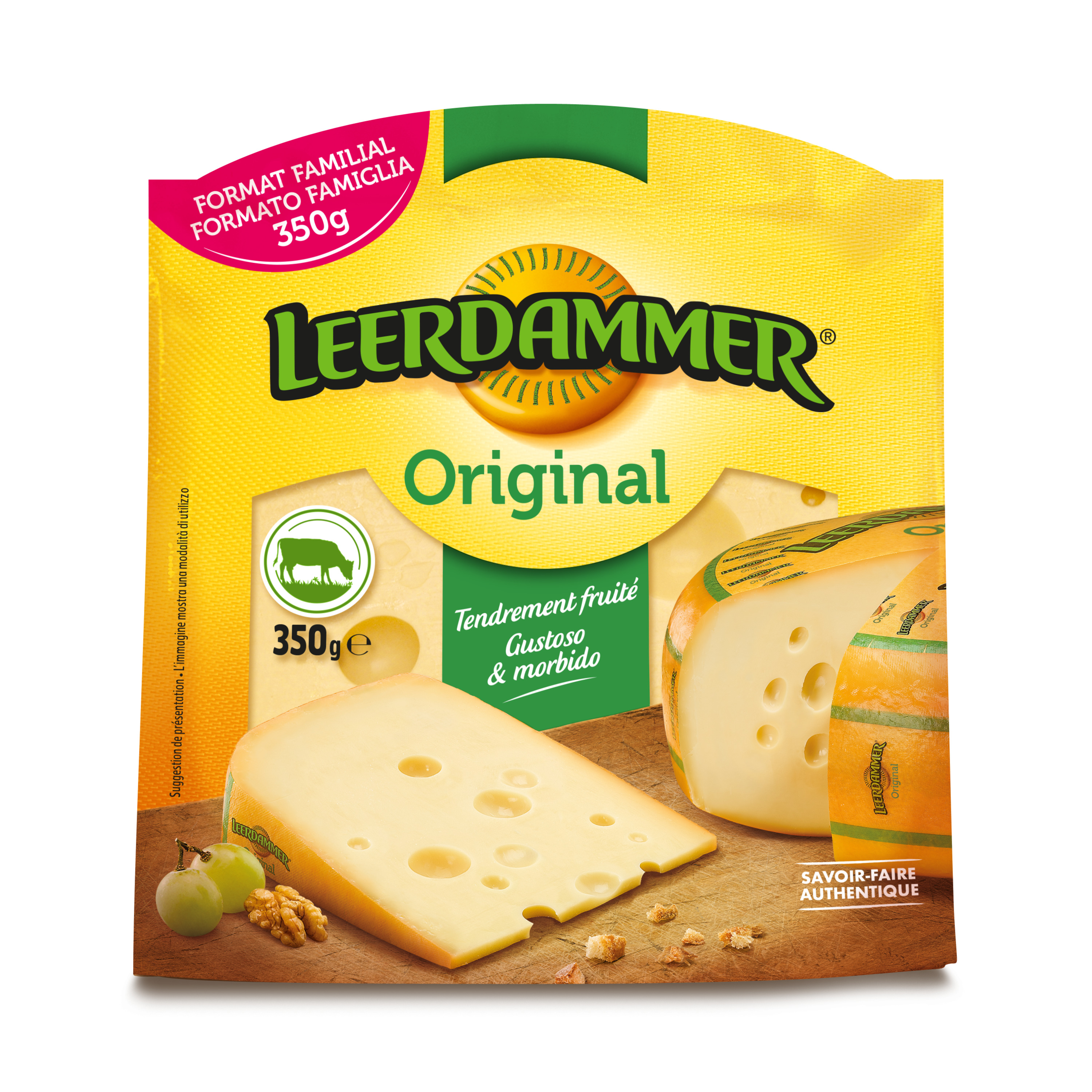 Découpée directement dans la meule de Leerdammer®, une portion de fromage à pâte pressée au goût incroyablement doux et fruité.