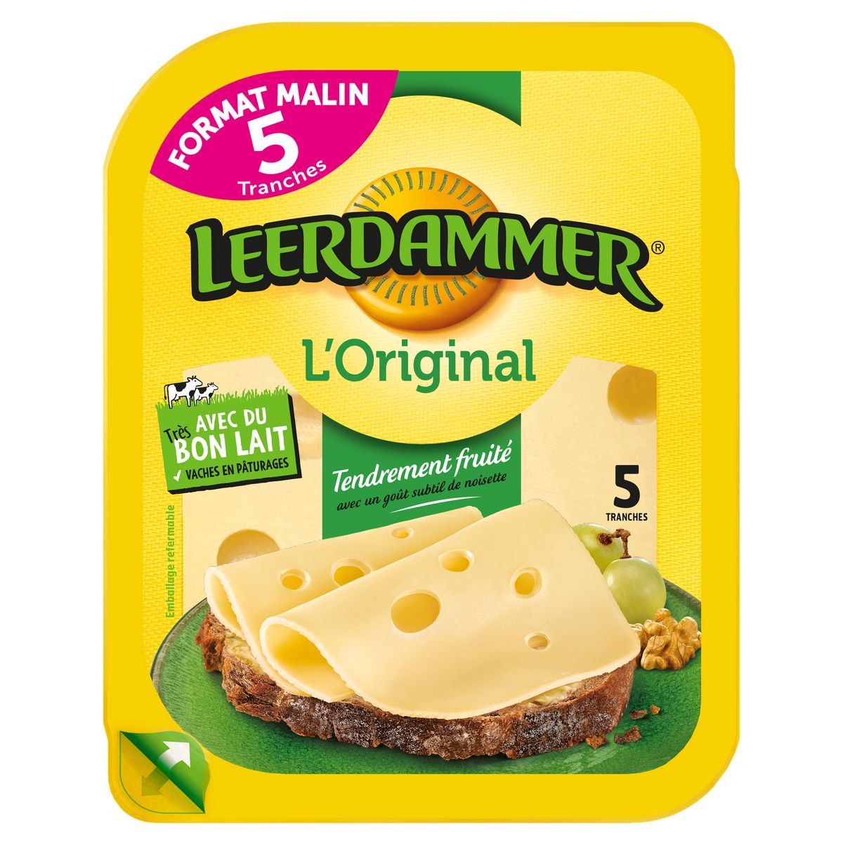Déception, goût moins prononcé que le Leerdammer en bloc mais pratique pour les sandwiches, donc...