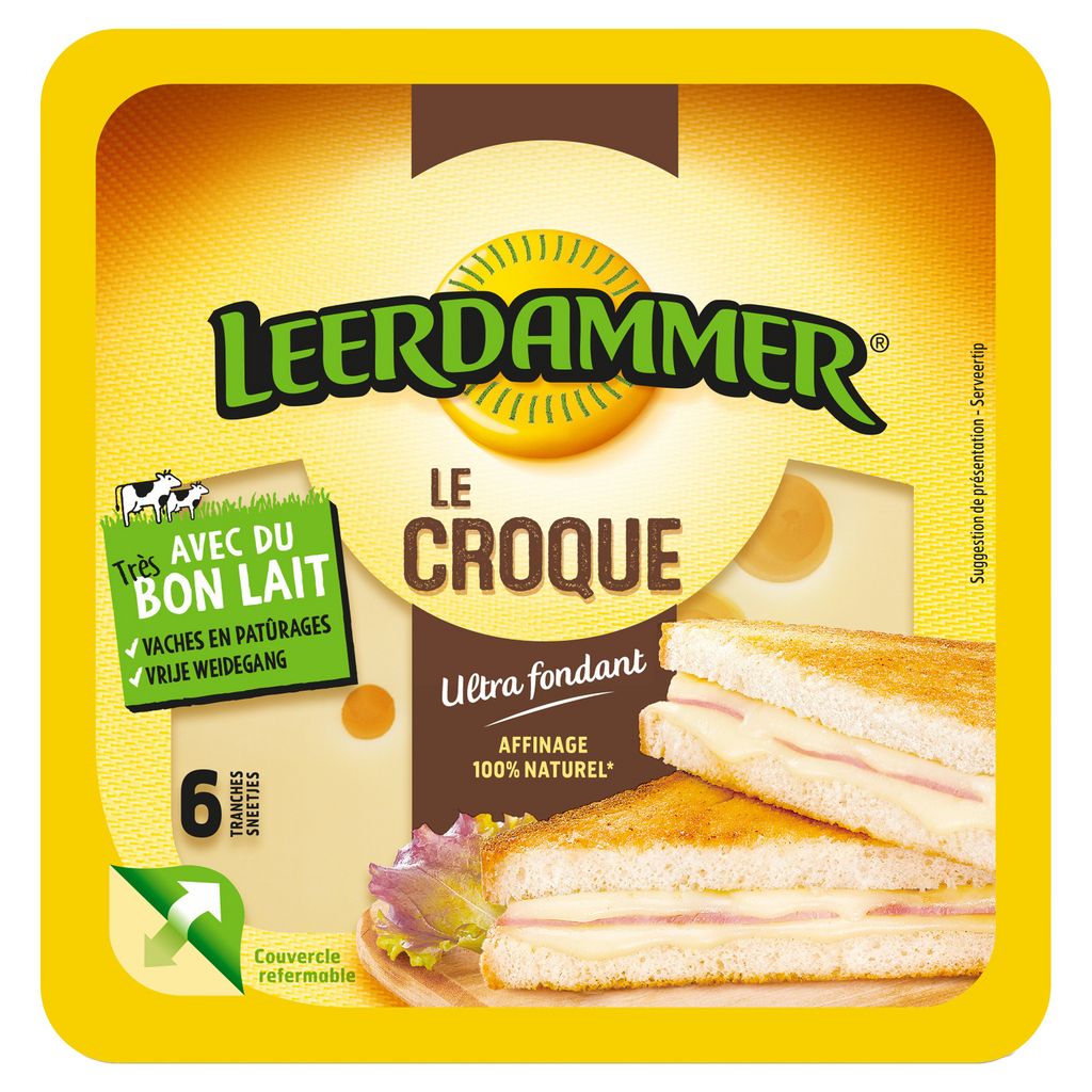 Une texture ultra fondante et un goût inimitable dans un format carré adapté au pain de mie pour de savoureux Croque-Monsieur.