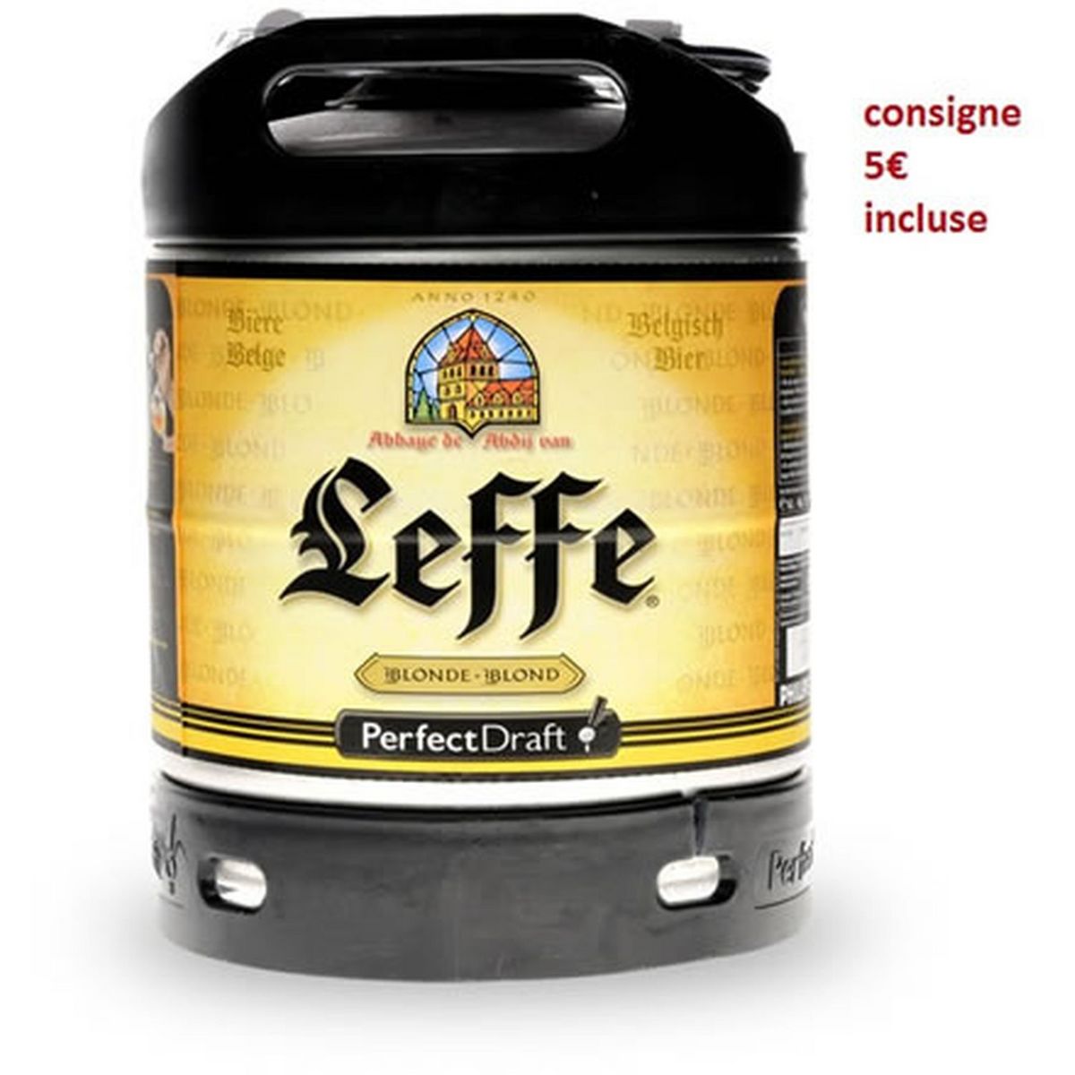 Fut bière LEFFE Abbaye Perfectdraft 6l. A la couleur dorée et lumineuse, Leffe Blonde est une bière de haute fermentation. Abbaye de Leffe blonde fût perfect draft 6,6° 6l