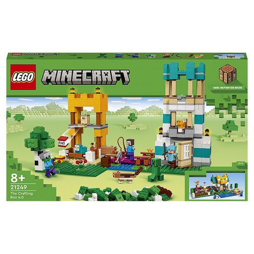 La boîte de construction 4.0 LEGO® Minecraft® (21249) place 2 modèles d'exception et des options de construction infinies entre les mains des joueurs de Minecraft dès 8 ans. Un set Minecraft 2-en-1 et des ressources créatives. Ce set transformable à l'infini propose 2 scénarios à construire : les tours de la rivière - une forteresse à défendre contre l'attaque d'un zombie et d'un Creeper? - ou la cabane chat - une grande cabane en forme de chat avec une aire de jeux pour chats. Les modèles proposés pour stimuler la créativité des enfants et les innombrables structures qu'ils peuvent imaginer sont peuplés de figurines et de créatures du jeu, dont Steve, Alex, un zombie, un Creeper, des chats et des moutons. De nombreux détails et fonctions Minecraft, dont du TNT qui explose, donnent une touche de réalisme à ce set épique. Pour ajouter une dimension numérique ludique, l'application LEGO Builder permet aux constructeurs de zoomer, faire pivoter les sets en 3D et suivre leur progression.