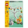 Set de jeu avec des animaux ? Surprenez tous les fans d'animaux dès 8 ans avec cet adorable kit de construction Le lapin de Pâques et la chasse aux ?ufs, un superbe jouet printanier à exposer dans n'importe quelle pièce, qui inspire le plaisir du jeu de rôle. ?ufs de Pâques ? Le set comprend 2 figurines LEGO® en briques - un lapin de Pâques espiègle et un poussin aux yeux brillants - pour décorer l'arbre et collecter les ?ufs. Jouet printanier ? Encouragez le plaisir de la construction familiale et égayez n'importe quel espace avec un arbre entouré de fleurs et de champignons, prêt à accueillir tous les ?ufs de Pâques colorés. Kit de construction ? Des accessoires, dont 6 ?ufs à construire avec des éléments de différentes couleurs, un filet et un chariot à construire avec des roues mobiles, favorisent la narration et le jeu de rôle. Un cadeau de Pâques pour les enfants et les adultes ? Ce modèle printanier amusant constitue un cadeau charmant pour les enfants et les amoureux des animaux : un modèle à construire et une pièce d'exposition à apprécier toute l'année. Dimensions ? Set de construction de 140 pièces avec un modèle d'arbre à construire mesurant plus de 14 cm de haut, 15 cm de large et 10 cm de profondeur