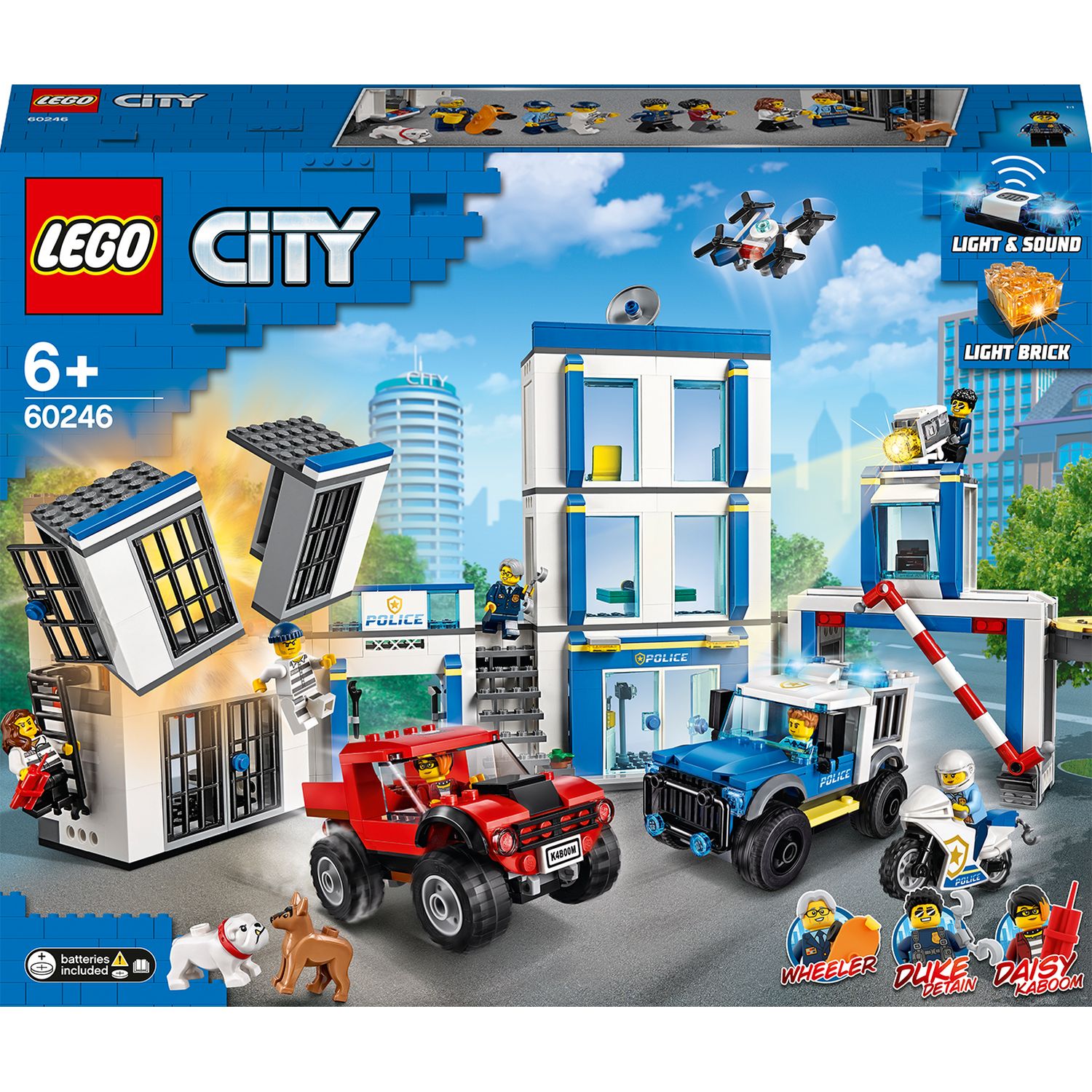 - Un commissariat de police, 2 camions, une moto et un drone. Inclut également 6 figurines, dont Duke DeTain, le chef Wheeler et Daisy Kaboom de la série télévisée LEGO® City, ainsi que 2 chiens.