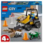 -Le set LEGO® City Le camion de chantier (60284) inclut un chargeur frontal, une brouette, des cônes de circulation, un panneau de signalisation, une pelle, une figurine d’ouvrier et un rat.