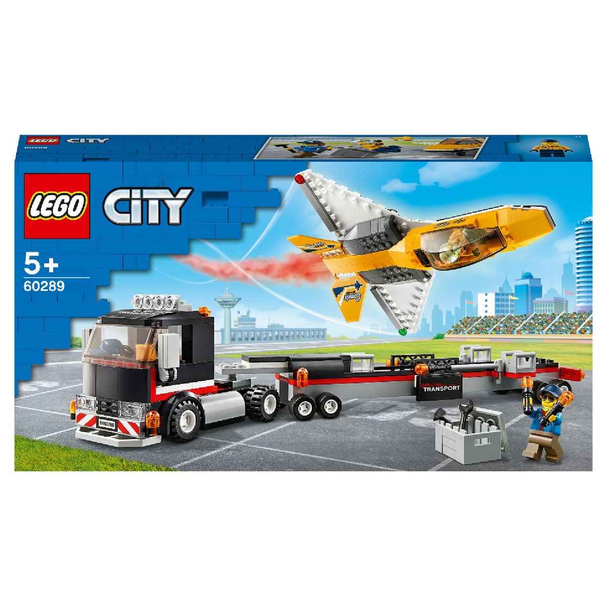 - Le set LEGO® City Le transport d'avion de voltige (60289) contient 281 pièces.