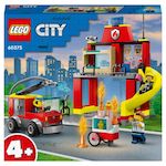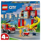City 60375 La caserne et le camion de pompier, Jouet avec Véhicule d’Urgence, Jouet Éducatif